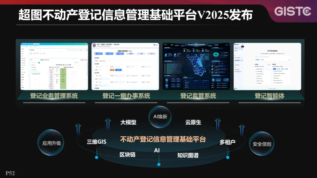 超图不动产登记信息管理基础平台V2025,基于大模型、三维 GIS、区块链、知识图谱、多租户、云原生等技术,实现不动产登记在保障安全信创基础上的AI焕新、应用升级。