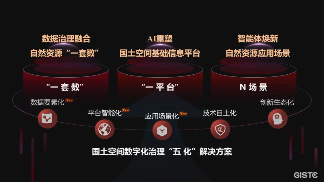 2024空间智能软件技术大会上,超图发布了国土空间数字化治理“五化”解决方案,包括数据要素化、平台智能化、应用场景化、技术自主化、创新生态化。今年,超图分别围绕“一套数”“一平台”“N场景”,提出了数据治理融合自然资源“一套数”、AI重塑国土空间基础信息平台、智能体焕新自然资源应用场景的解决方案。