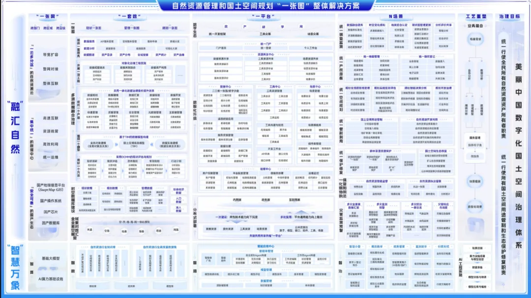 以上,针对自然资源“一套数”“一平台”和应用场景的建设需求,分别介绍了数据治理融合自然资源“一套数”、AI重塑国土空间基础信息平台、智能体焕新自然资源应用场景等解决方案。