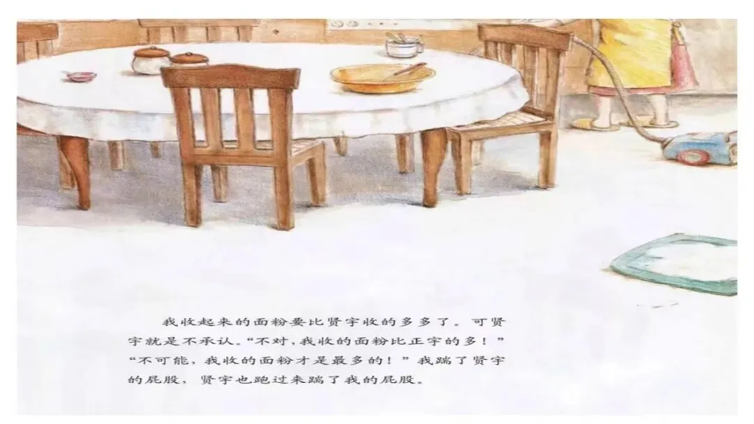 我收起来的面粉要比贤宇收的多多了。可贤宇就是不承认。“不对,我收的面粉比正宇的多!”“不可能,我收的面粉才是最多的!”