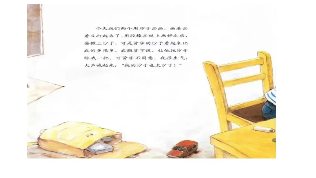 我跟贤宇说,让他把沙子给我一把。可贤宇不同意。我很生气,大声喊起来:“我的沙子也太少了!”