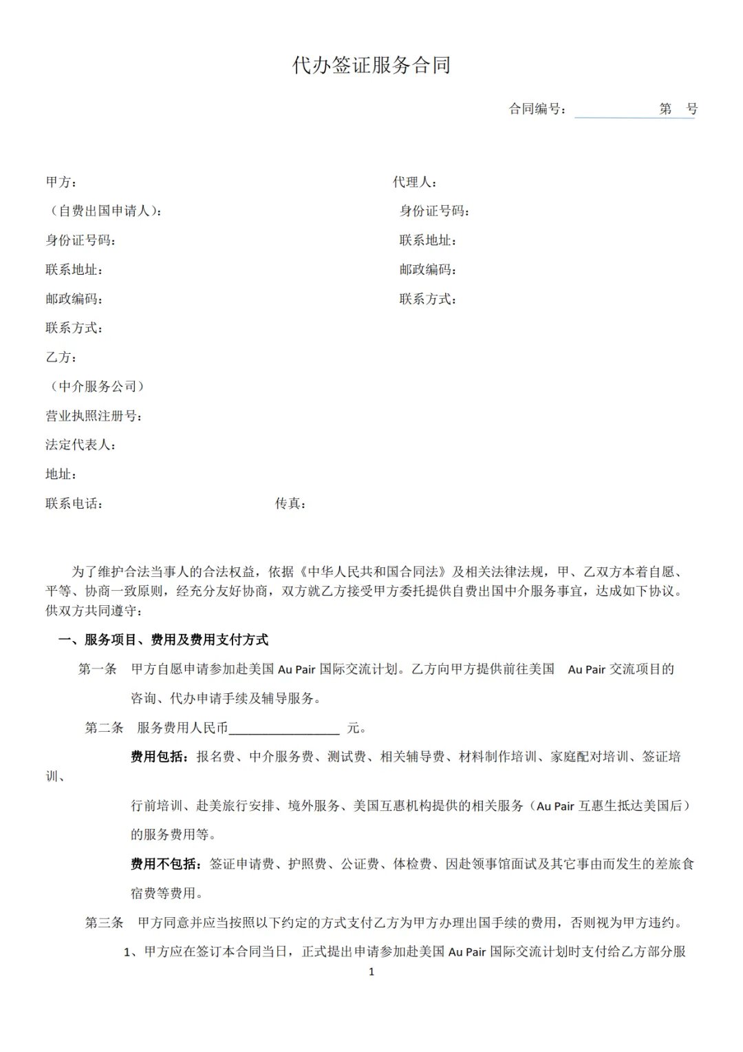 >代办签证服务合同模板,WORD文档电子版,可免费下载打印