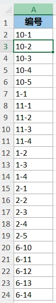 将下图 1 的编号按“-”左边的数字优先,右边的次之的规则升序排序。