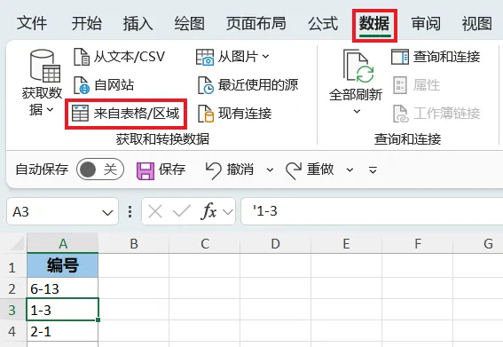 1. 选中数据表的任意单元格 --> 选择任务栏的“数据”-->“来自表格/区域”