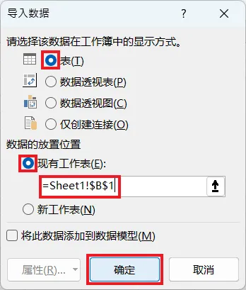 10. 在弹出的对话框中选择“表”--> 选择“现有工作表”及所需上传至的位置 --> 点击“确定”