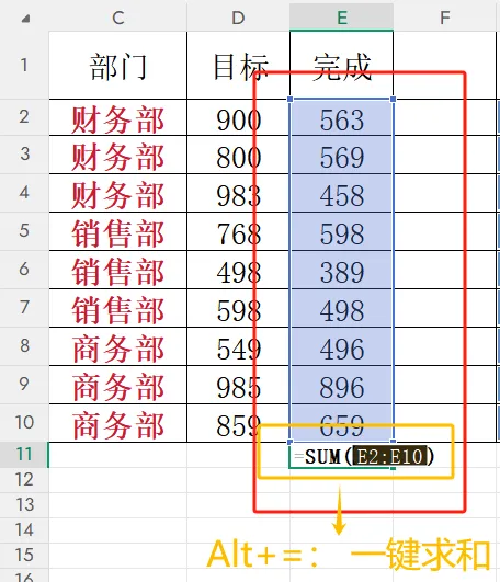 如果你的数据在E2:E10区域,想在这一列下方显示小计,只要选中E2:E11(包含空白的小计单元格),按Alt+=,Excel会自动判断求和方向,精准算出所有结果啦,完全不用手动输入SUM函数哦📊。