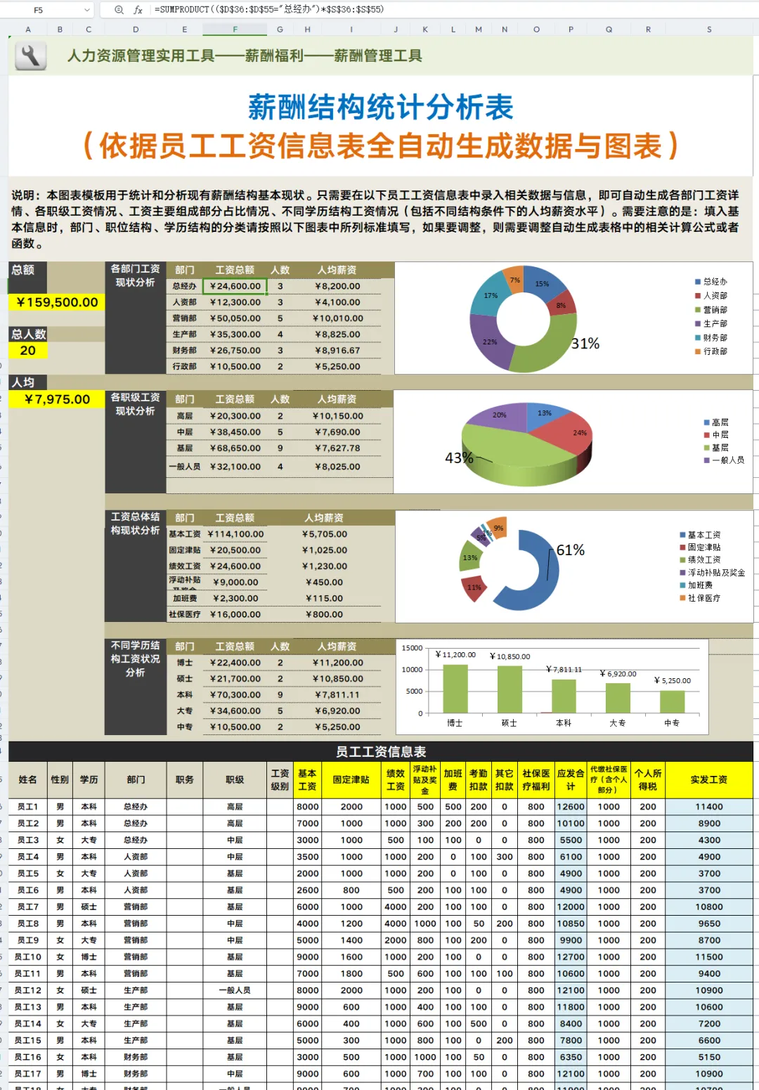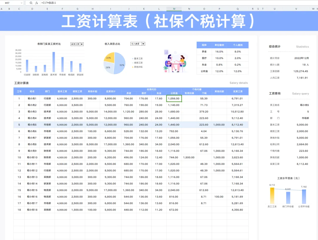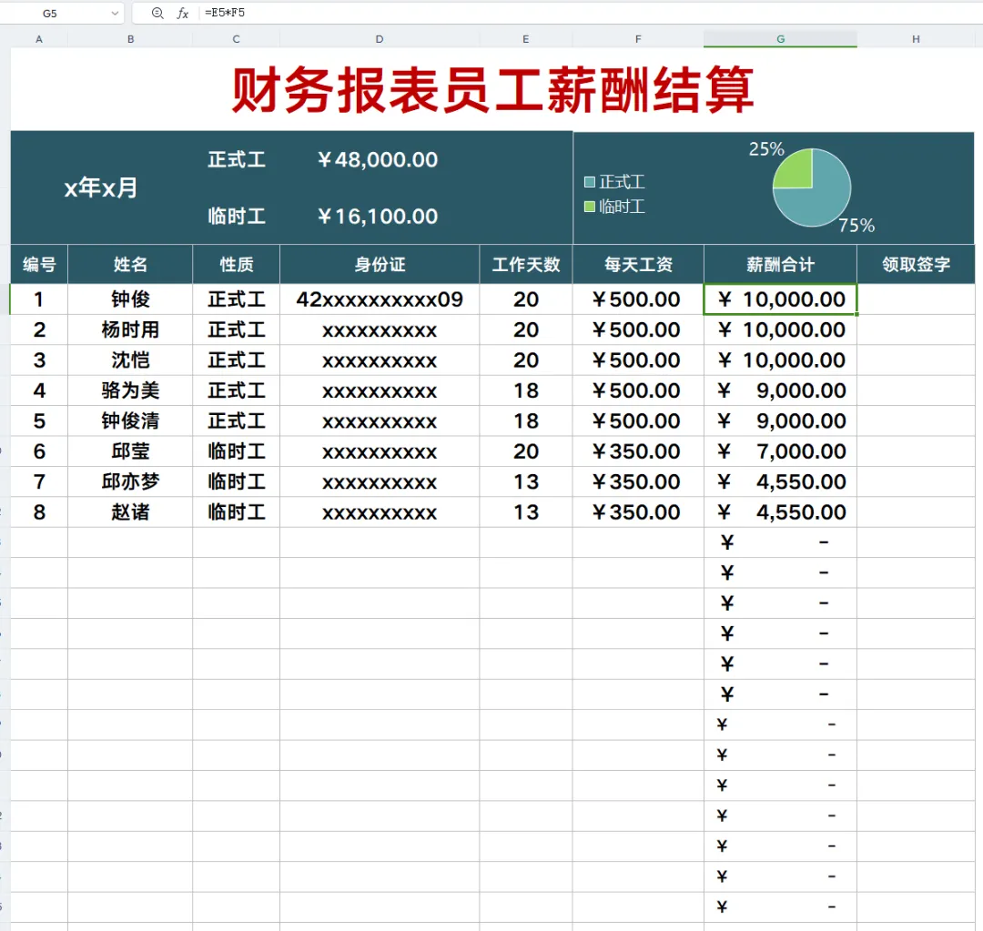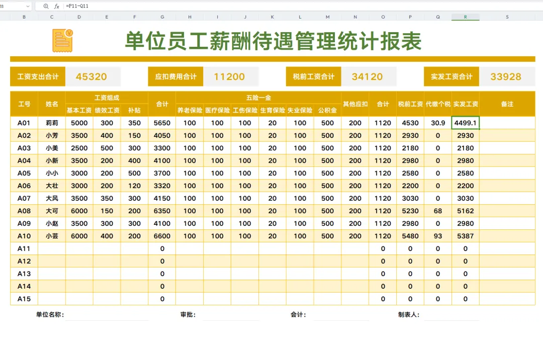 工资薪酬报表可是我们工资钱袋子啊!所以每个月都会计算工资,工资一般包含加班费、奖金、绩效、还有五险一金什么的,这些每一项都要好好计算,小编这里有份薪酬报表,里面有设置公式,直接将对应的数据写进去就可以了!快来看看吧!(文末有领取资料的方式)