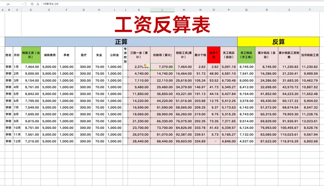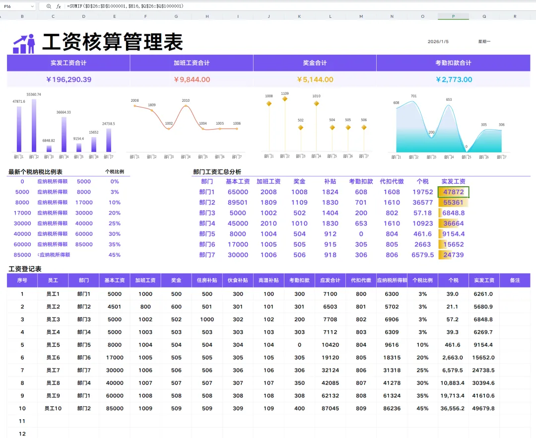 新年新表格!26年1月工资核算!excel公式全覆盖!工资核算速搞定!
