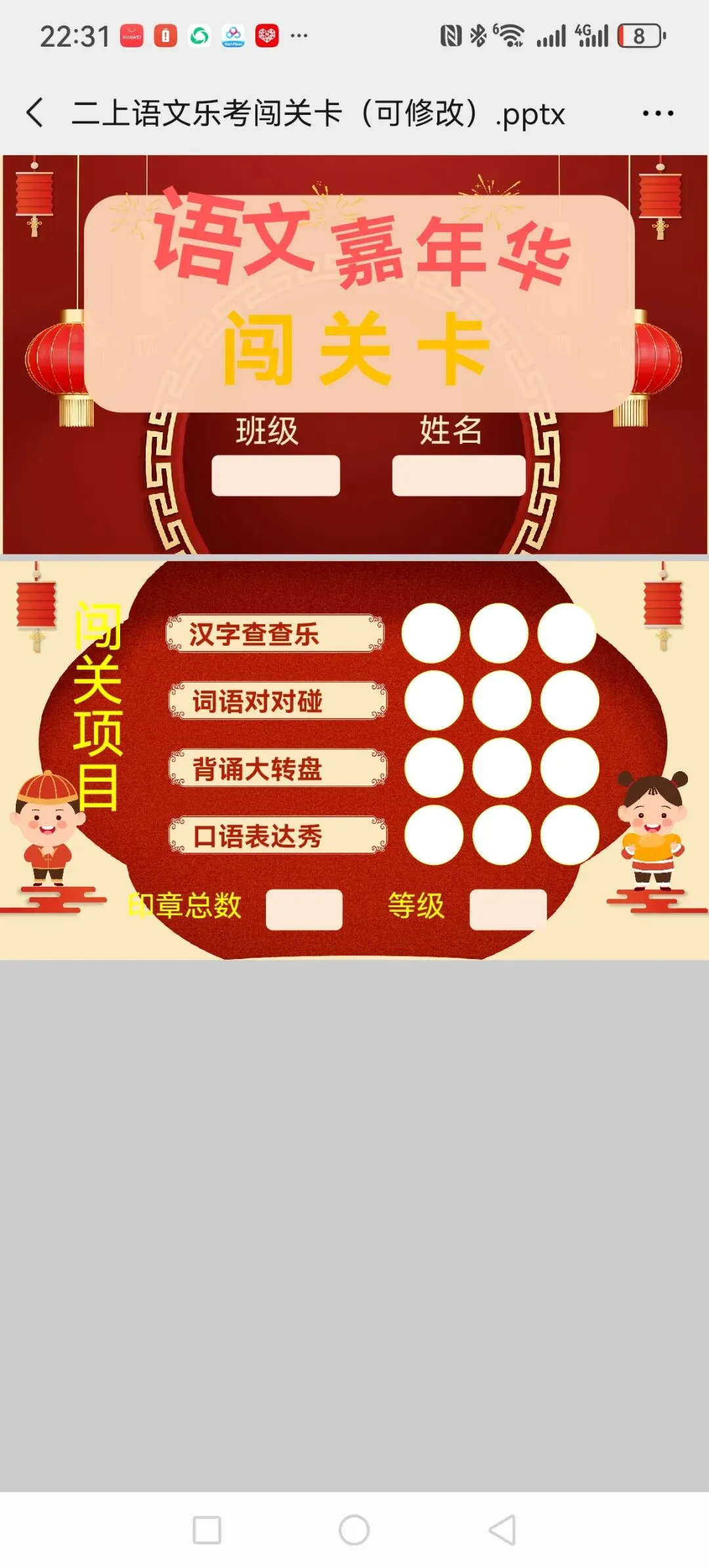 4. 学生准备:提前向学生讲解乐考规则和流程,让学生熟悉各关卡的考查方式;发放“乐考闯关卡”,学生每通过一个关卡,考官在卡片上盖章或贴星星。