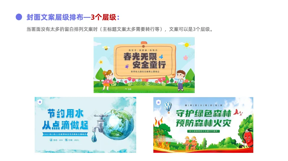 * 一般内页大标题是过渡页的标题,内页小标题层级过多建议将一级标题直接作为内页大标题使用
