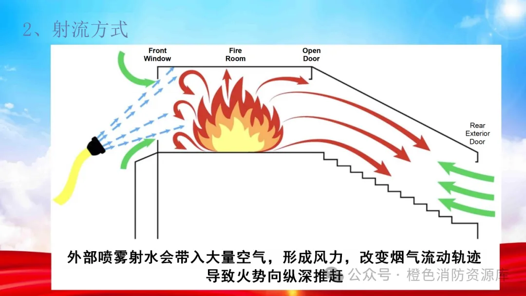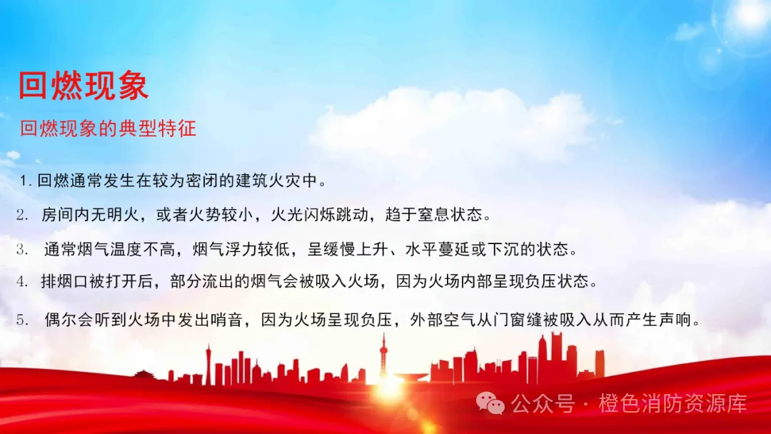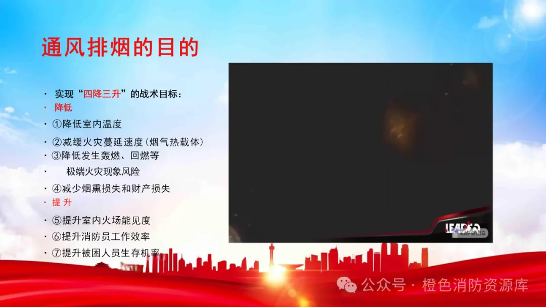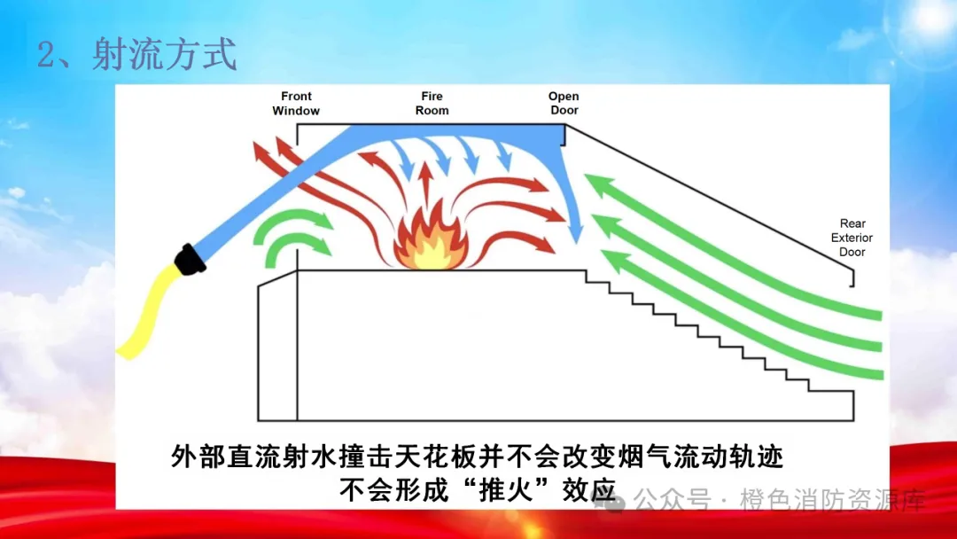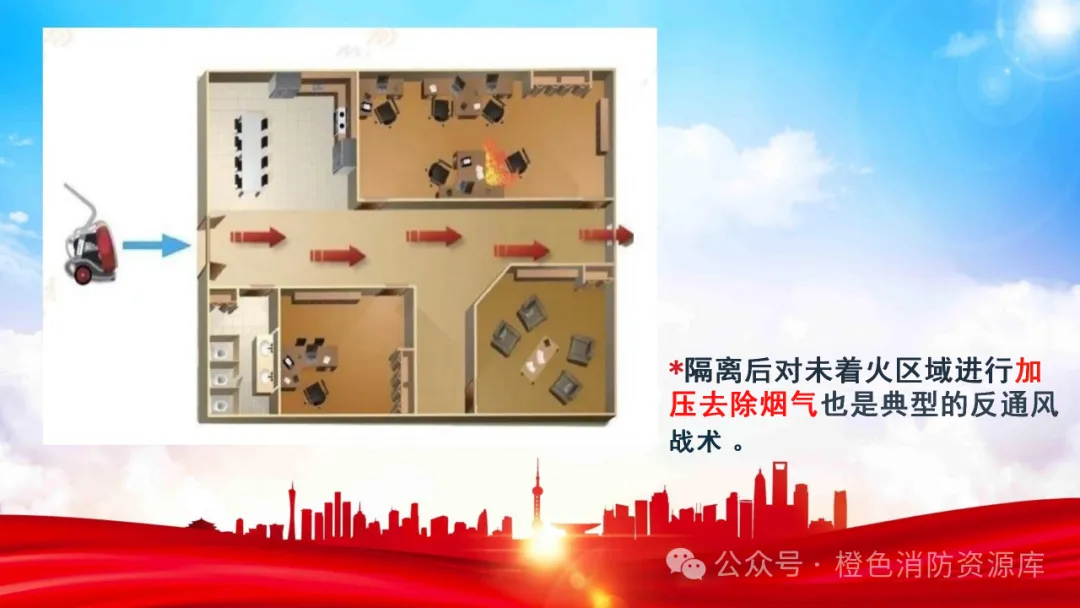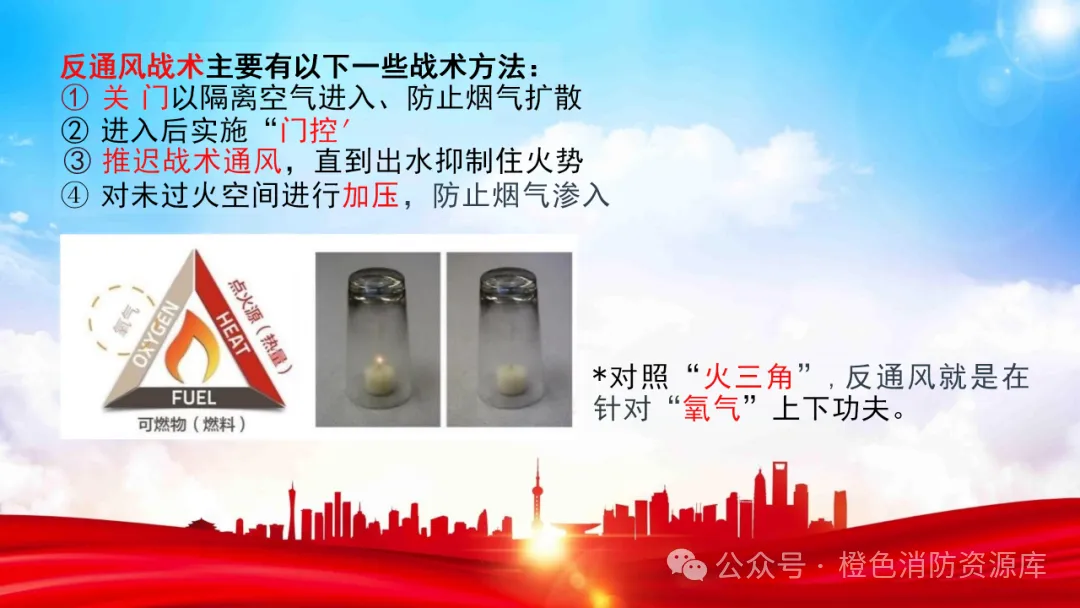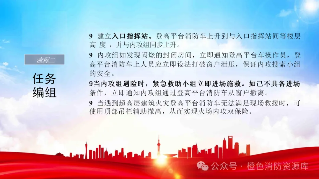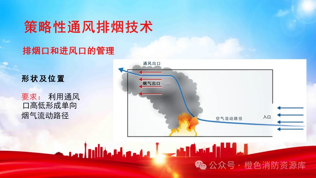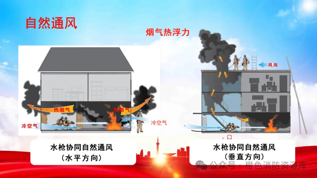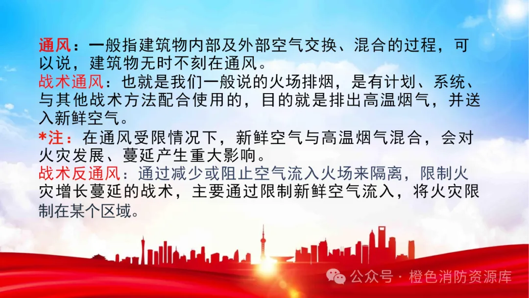 主旨内容:该课件围绕灭火救援基础技术展开,涵盖五大核心内容:水枪射流技术,包括跪姿、立姿等射水姿势及直流、喷雾、开花等射流方式,强调不同射流空气带入量差异及应用场景;内攻搜救程序,涉及火场信息收集、任务编组(内攻组与应急组轮换)、攻守判断、撤离时间估算等流程及实战问题应对;轰燃回燃预防,解析轰燃(600℃烟温、烟层下降)与回燃(烟气爆炸)特征,提出闻烟识火、门控技术、烟气冷却、反通风等预防措施;火场通风排烟,阐述烟气流动规律,介绍自然、机械等排烟方法及“辅助灭火、需进排风口”等原则与禁忌;举高类车辆应用,说明登高平台消防车(动力支持、供水、救人)和云梯消防车(伸缩云梯、滑斗)功能及操作规范。旨在系统提升灭火救援技术与安全效能。