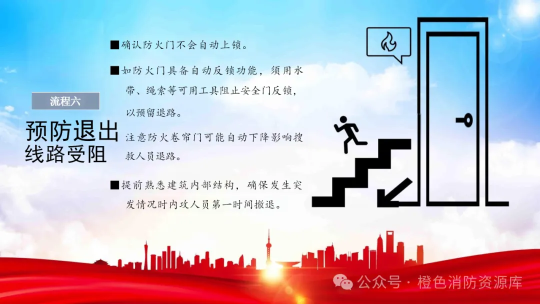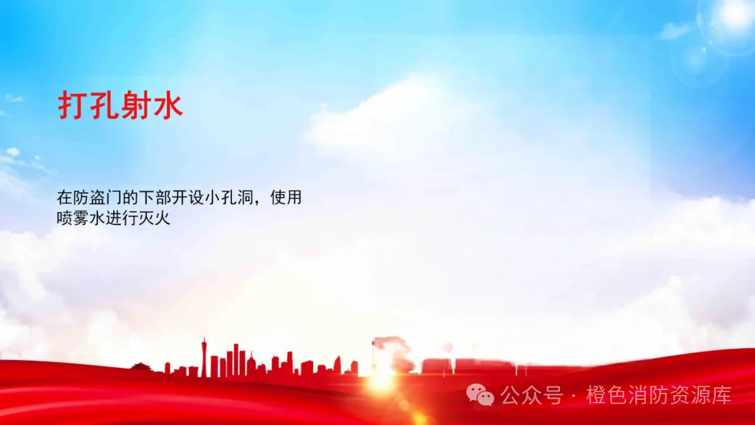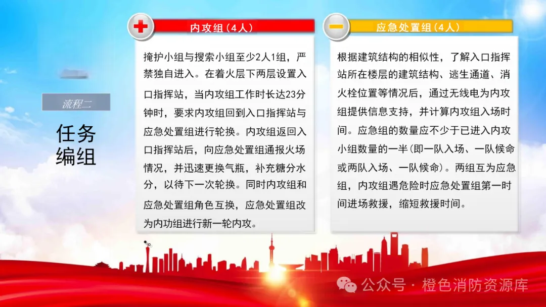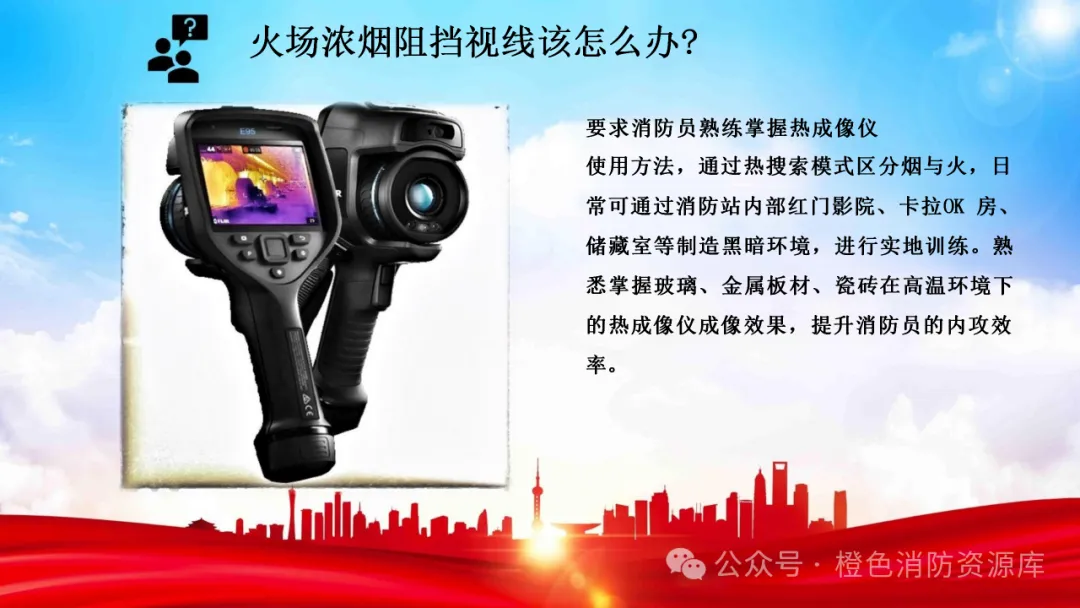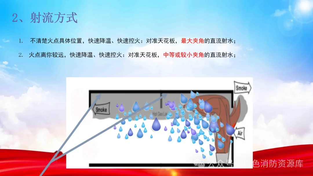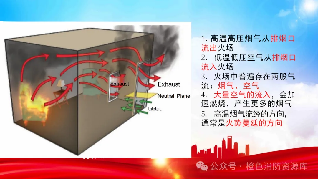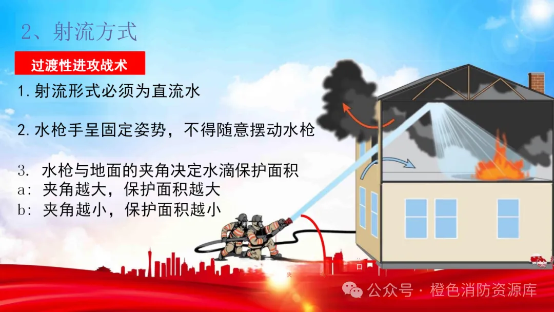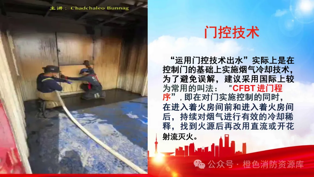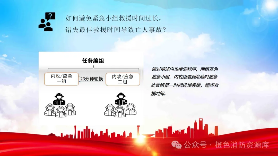 主旨内容:该课件围绕灭火救援基础技术展开,涵盖五大核心内容:水枪射流技术,包括跪姿、立姿等射水姿势及直流、喷雾、开花等射流方式,强调不同射流空气带入量差异及应用场景;内攻搜救程序,涉及火场信息收集、任务编组(内攻组与应急组轮换)、攻守判断、撤离时间估算等流程及实战问题应对;轰燃回燃预防,解析轰燃(600℃烟温、烟层下降)与回燃(烟气爆炸)特征,提出闻烟识火、门控技术、烟气冷却、反通风等预防措施;火场通风排烟,阐述烟气流动规律,介绍自然、机械等排烟方法及“辅助灭火、需进排风口”等原则与禁忌;举高类车辆应用,说明登高平台消防车(动力支持、供水、救人)和云梯消防车(伸缩云梯、滑斗)功能及操作规范。旨在系统提升灭火救援技术与安全效能。