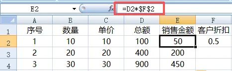 新的一年,我们又见面了。开年第一篇,就从Excel开始吧。每周一个知识点,不知不觉已经过了6个月,相信你的Excel技能一定有了很大的突破。接下来几个月,我们一起来探索Excel中的函数应用。在Excel中,引用决定了公式在复制或填充到其他单元格时如何处理单元格地址。而符号“$”所在的位置就决定了单元格的地址是相对引用、绝对引用还是混合引用。当公式被复制到其他位置时,引用的单元格地址会随公式所在的位置变化相对应自动调整。使用场景:当需要对一系列单元格执行相同的计算时,选用相对引用。如上图所示,当D2中的公式向下拖动到D3公式会自动变为=B3*C3当D2中的公式向右拖动到E2公式会自动变为=C2*D2绝对引用是指,公式中的单元格地址是绝对的,锁定的。无论公式被复制到哪个位置,引用单元格地址都固定不变。此时,单元格地址在列标和行号前都插入符号“$”,例$A$1。使用场景:当计算时始终需要引用同一个固定的单元格时,选择绝对应用。如上图所示,F2为销售折扣,E2中的销售额=D2*$F$2此时向下拖动E2中的公式,D2为相对引用,会依次变为D3,D4......而$F$2为绝对引用,无论复制到哪一行,都会牢牢锁定F2的销售折扣。公式被复制后,单元格地址会只锁定行或只锁定列,而另一项会进行相对应的调整。只锁定列、允许行变化:$A1,表示列固定为A,行号随公式位置调整。只锁定行、允许列变化:A$1,表示行固定为1,列标随公式位置调整。想了好久也没想出来什么情况下需要用到混合引用,你有碰到过吗?欢迎分享~输入公式时,选中单元格地址,按F4键可以循环切换4种引用:A1(相对)→$A$1(绝对)→A$1(锁行)→$A1(锁列)→A1......没钱($)跟着跑(相对引用),有钱不动摇(绝对引用),谁前有钱谁固定(混合引用)。关于Excel函数这一章,你有特别想了解的内容吗?欢迎留言。期待下周与你相见~我们每周,一见。每周一,见。