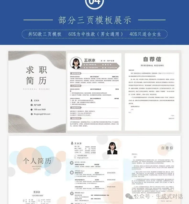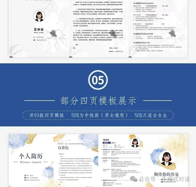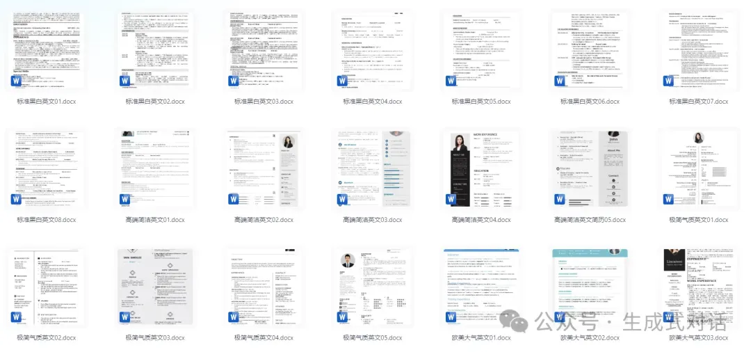 清爽一页纸、信息四页纸、表格版、英文版,各种风格都有!还有自荐信模板助攻,帮你从求职大军中脱颖而出~