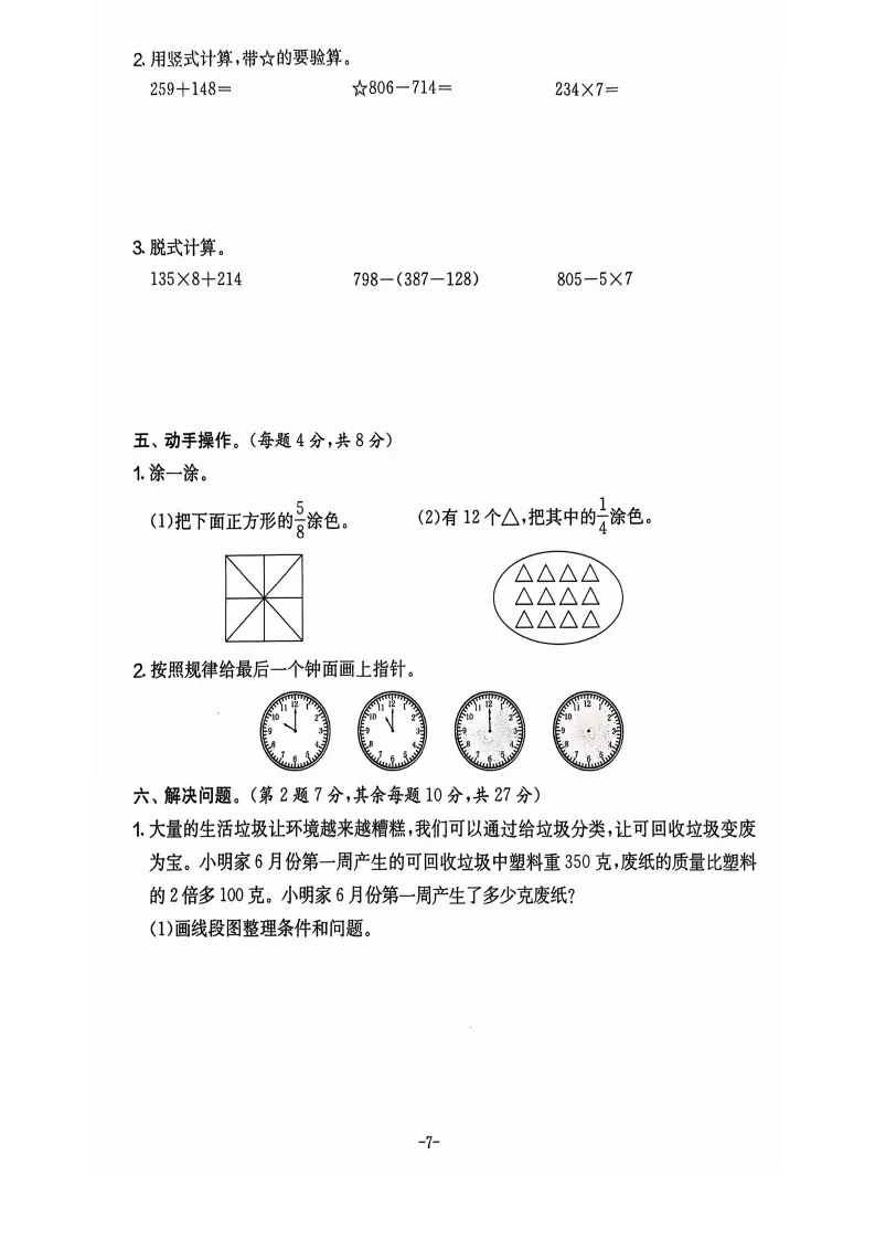 六、解决问题(第 2 题 7 分,其余每题 10 分,共 27 分)
