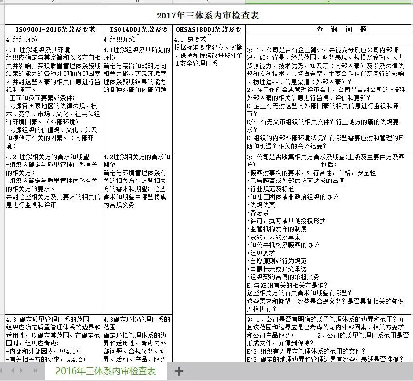 三体系内审检查表