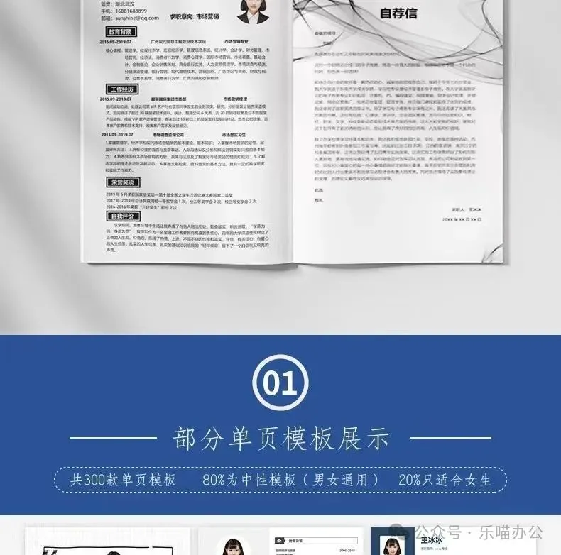包含各种风格,我相信总有一款适合你,有中文简历、一页纸简历、求职信、英文简历、两页纸简历、封面和表格等多种简历模板,保证让 HR 看得心花怒放。