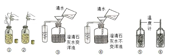 D. ⑤⑥两组实验结果说明萌发的种子呼吸时释放热量