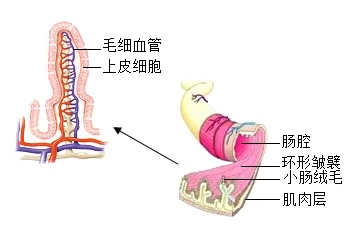 C. 小肠绒毛内分布着大量的毛细血管,有利于物质消化