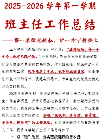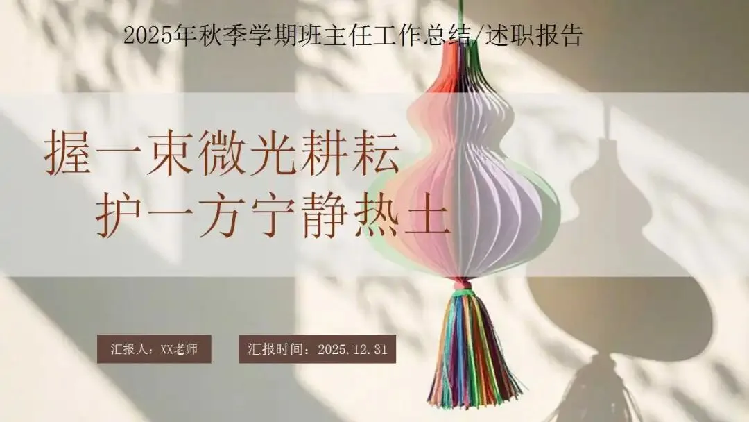 2025年秋季班主任工作总结ppt:握一束微光耕耘,护一方宁静热土。