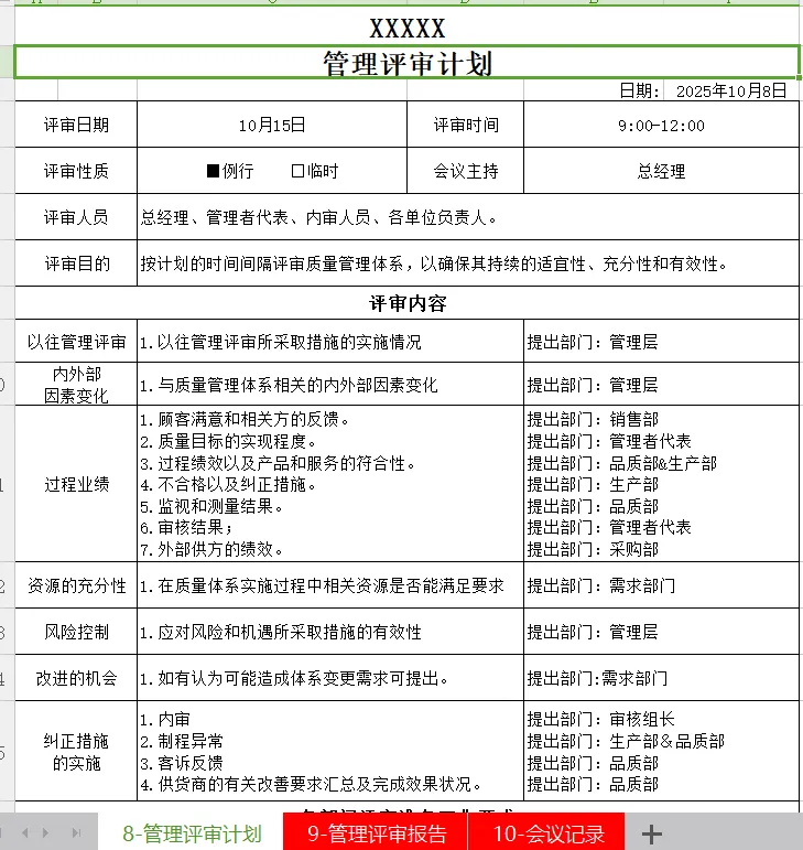 | 按计划的时间间隔评审质量管理体系,以确保其持续的适宜性、充分性和有效性。 |