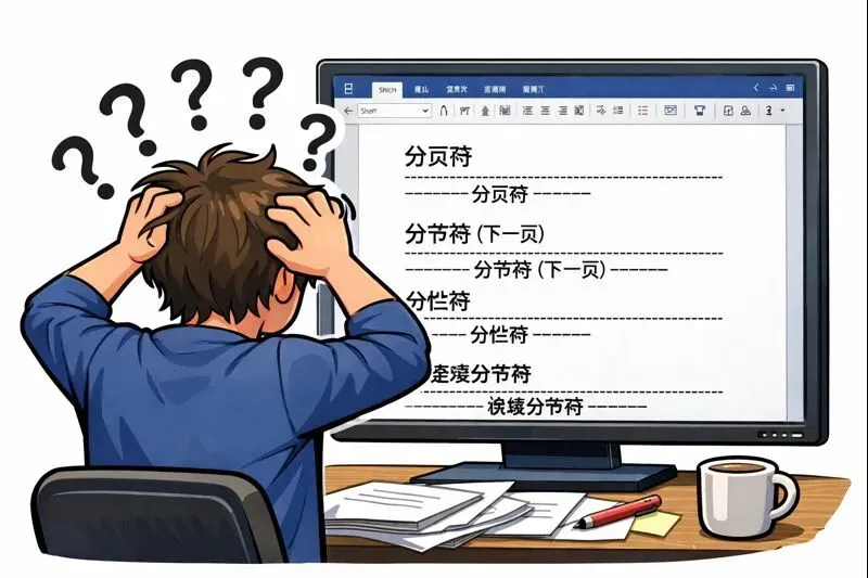 连续分节符:插入后,看起来和换行没啥区别,属于高级排版必备,但也会导致“烦人”的问题。