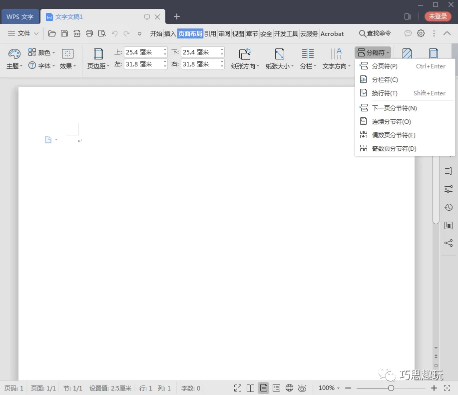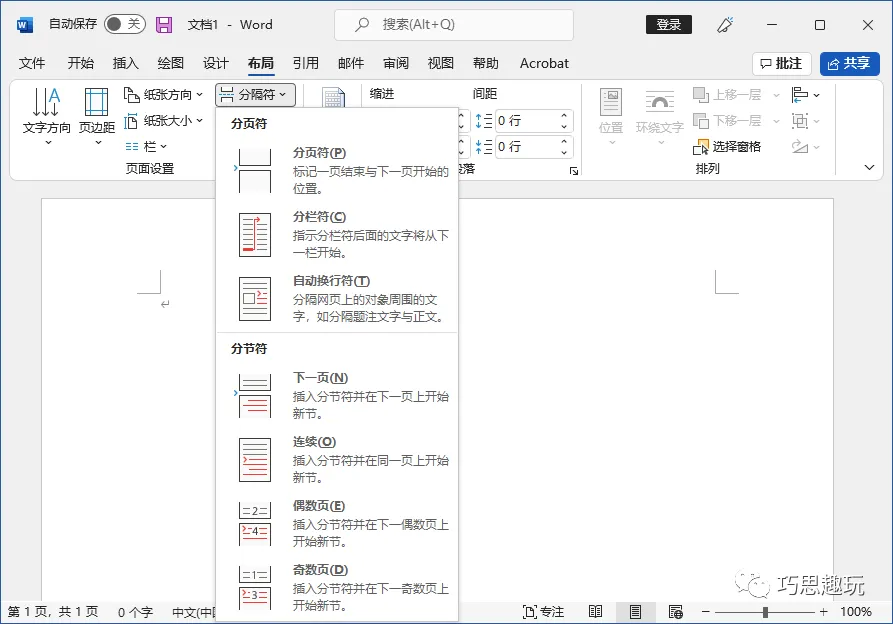 分页符:最常见的一种。点击“插入”→“空白页”,其实就是插入了分页符。起到的作用很简单,让你不需要狂敲回车,直接另起一页。