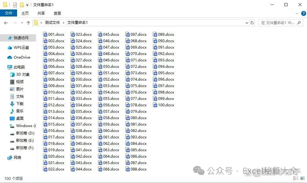 新建一个文件夹(如待合并文档),将100份Word文件放入其中。