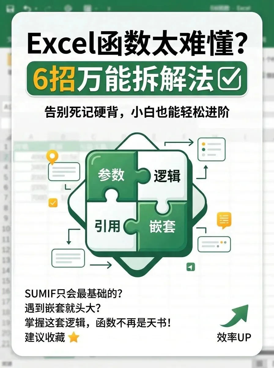 很多同学学习Excel都有这样的困惑:单个函数一看就会,可一到实际工作,看到别人写的长长一串嵌套公式,立刻两眼一抹黑,感觉像在看天书。为什么书上简单的SUMIF,在实际中能变得那么复杂?其实,无论多“神仙”的公式,本质上都是多个函数的组合。