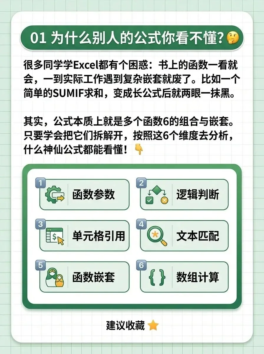 只要掌握下面这六大拆解维度,你就能像破解密码一样,轻松看懂任何复杂公式,从此告别公式恐惧症!