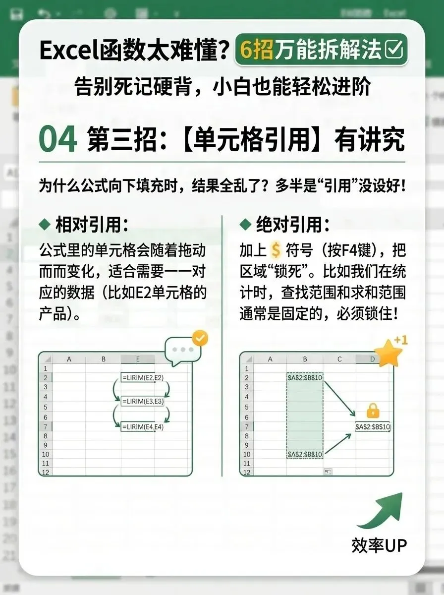 第三招:分清单元格引用——理解公式的“复制逻辑”