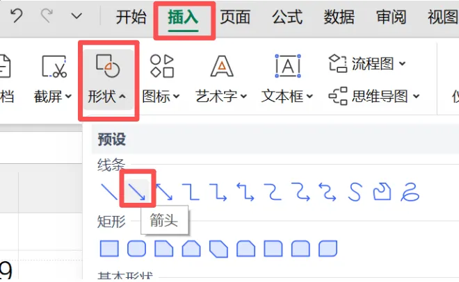 【插入】——【形状】——【箭头】