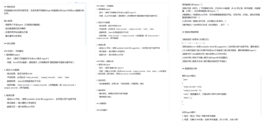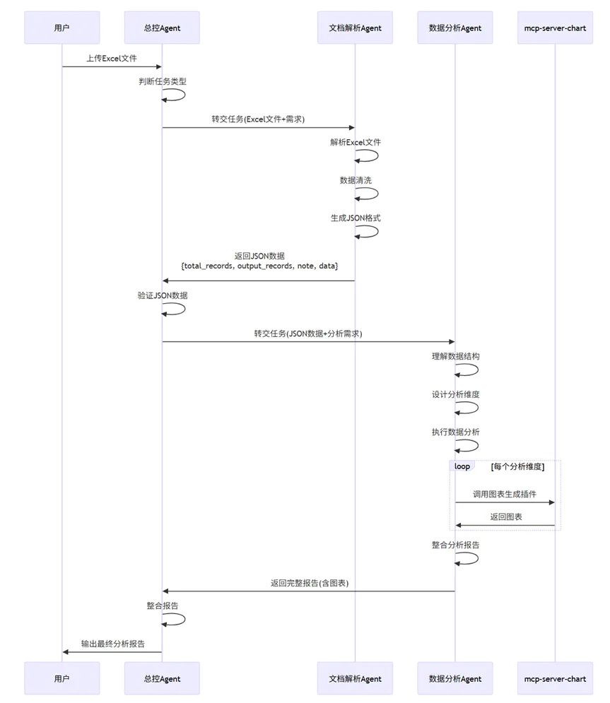 2.合理架构:总控Agent协调,文档解析Agent和数据分析Agent各司其职