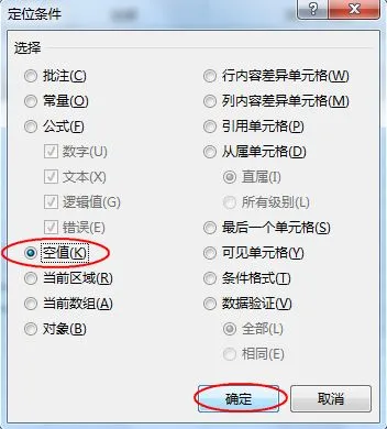 按<F5>键,在弹出的【定位】对话框中选择【定位条件】