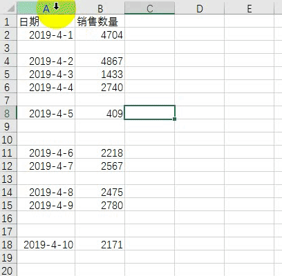 一个一个的选中空行,然后点鼠标右键,删除(数据多时容易出现漏删情况)