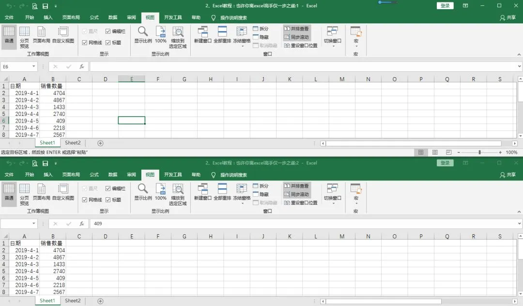看一下Sheet1表,再看一下Sheet2表,看一下Sheet1表,再看一下Sheet2表,如此重复切换工作表去查看数据。