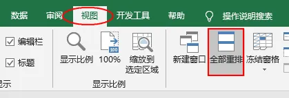 想要切换排列方式,在【视图】选项卡下选择【全部重排】