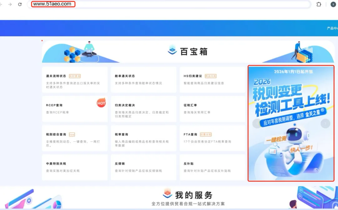Tips:如您是金关之星®️关务及贸易合规系统正式用户,可直接打开【www.51aeo.com】登录系统,前往【基础资料】-【企业物料】模块使用【税则校验】功能进行一键检测物料税则更新。任何问题可联系您的平台顾问。以上最终审核及解释权归