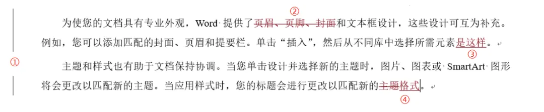 如图,在【修订】状态下对文档进行修改时,修改痕迹一目了然: