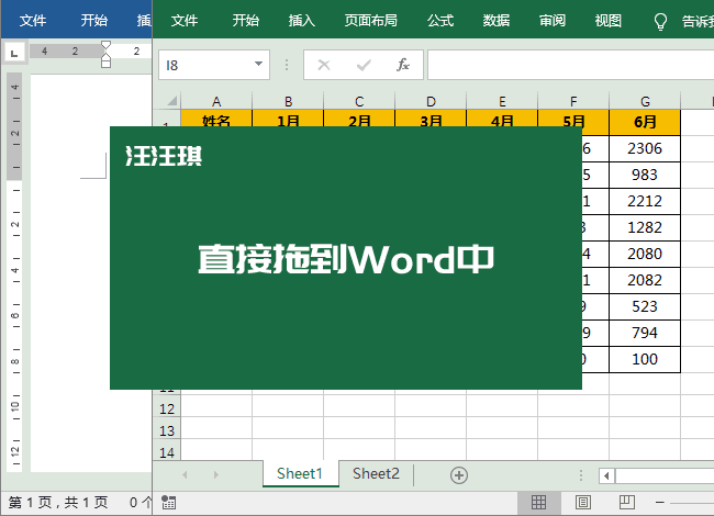 我们打开Word和Excel软件,选中Excel中的表格,然后将光标移动到边缘处,按住「Ctrl」键不松,将表格拖拽到Word窗口即可。