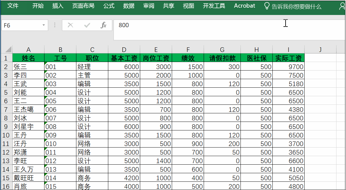 - 所有选中的工资数值会自动加上复制的金额,实现统一上调,且不影响其他列数据。