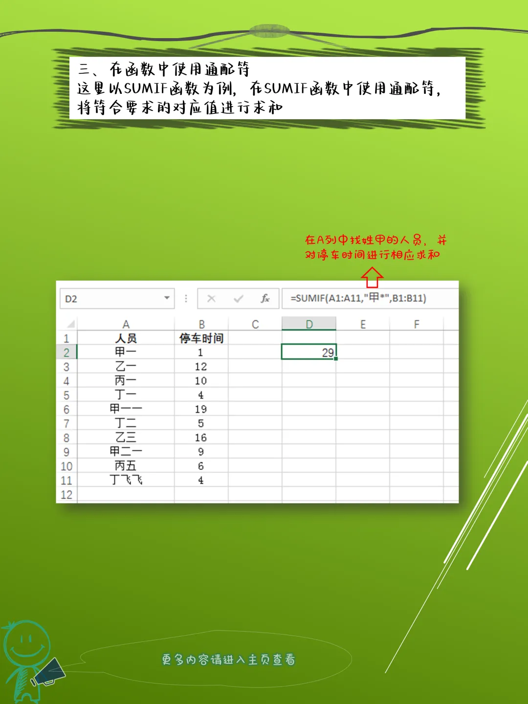 这里以SUMIF函数为例,在SUMIF函数中使用通配符,将符合要求的对应值进行求和。