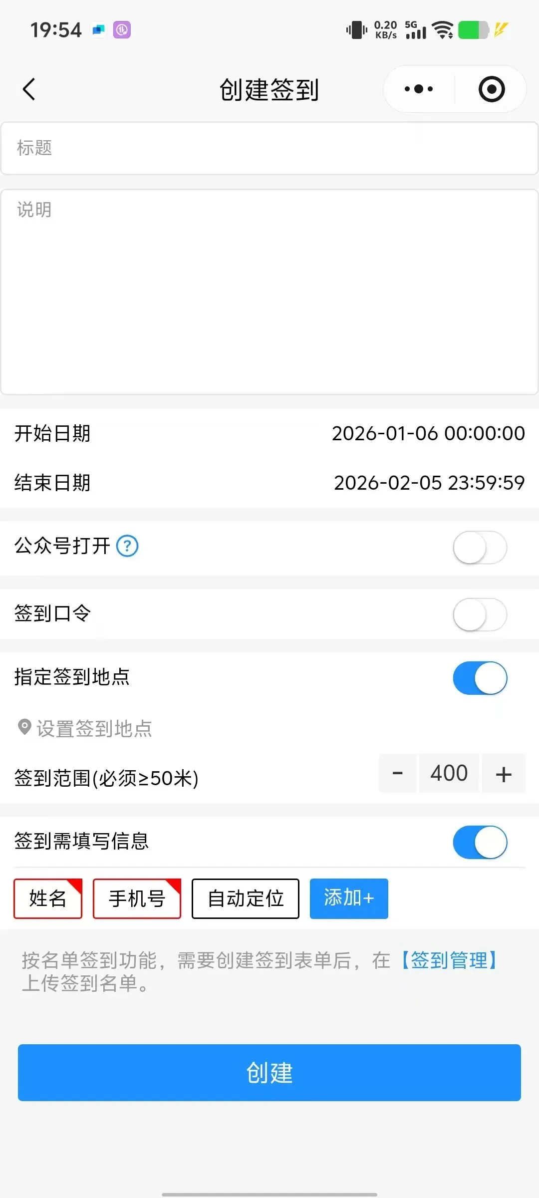 这款小程序可以发起会议签到、考勤签到、学生每日签到等签到合同。因为小程序的表单功能非常强大,可以设置多个签到时间段、还可设置指定位置签到和范围,需则可以开启签到信息填写。例如签到时填写姓名,截图上传等功能