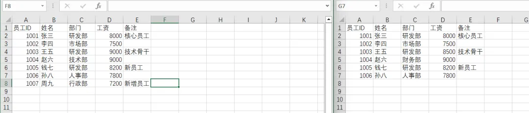 最后点击开始比对按钮,软件会自动分析两个文件的差异,并生成对比后的Excel文件,如图: