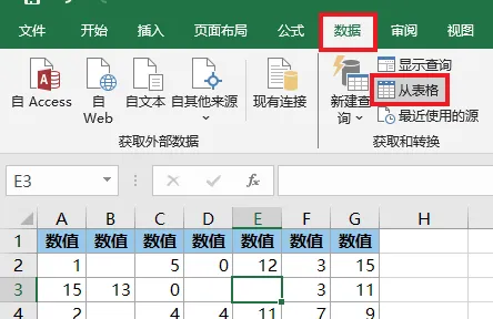1. 选中数据表的任意单元格 --> 选择任务栏的“数据”-->“从表格”