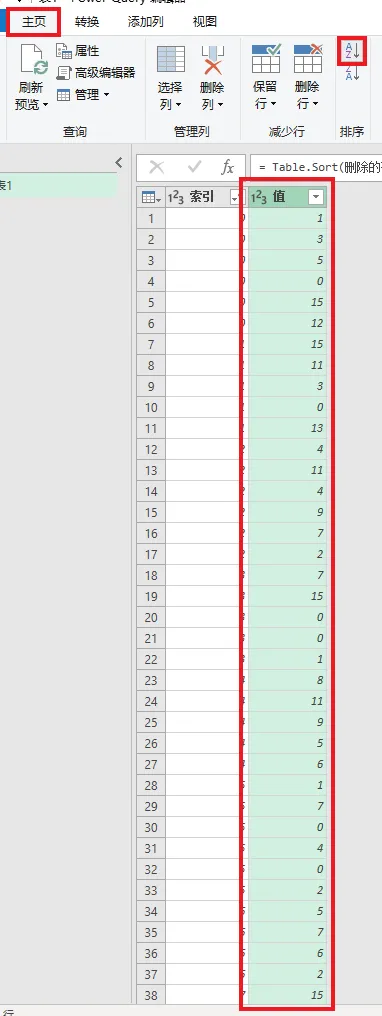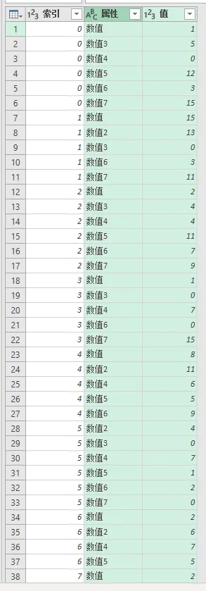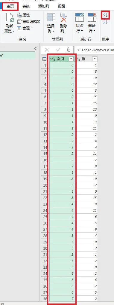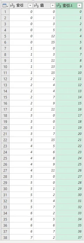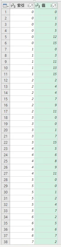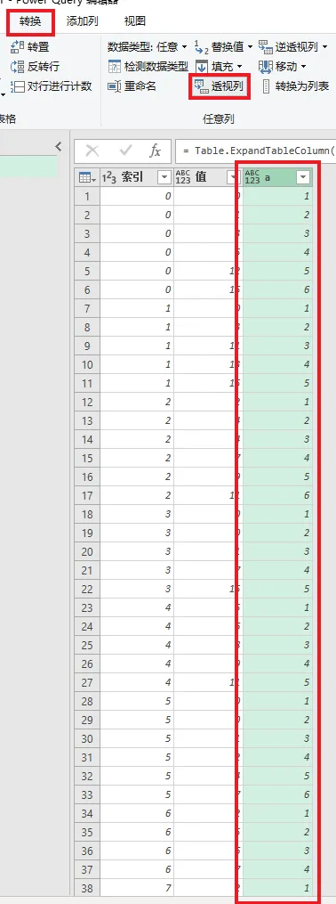 * 第 7 步的时候添加一个索引列,看似没有作用,其实是为了此时展开的时候,“值”列仍保持升序排序,否则的话,排序就全乱了。