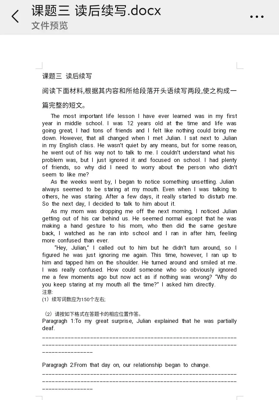 读后续写原文附在最后。