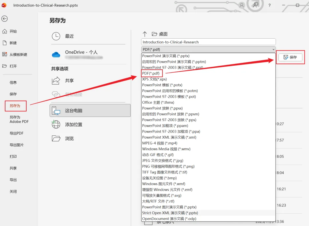 1、打开PPT,点击【文件】-【另存为】,选择【pdf】格式保存即可。