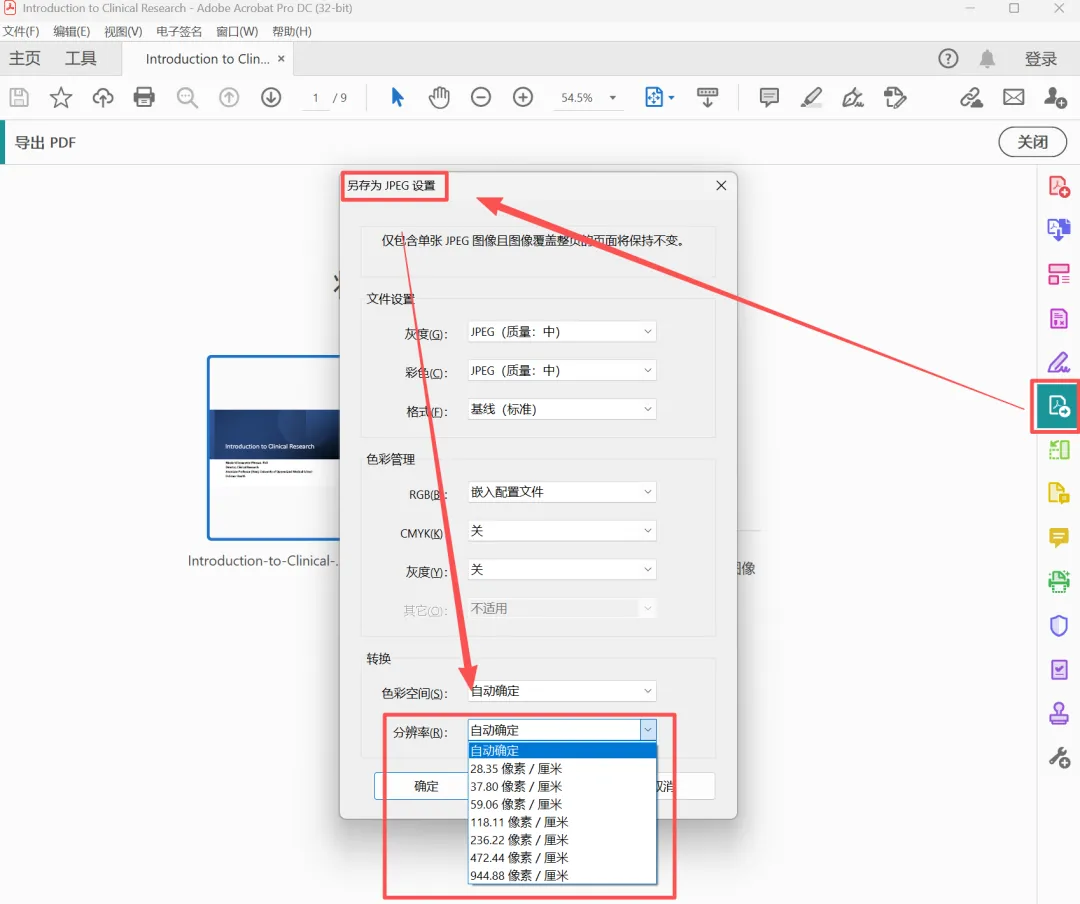 2、用Adobe Acrobat Pro打开PDF,点击【导出PDF】-【图像】,选择一种图片格式,并自行调整分辨率。最后点击【导出】就可以了。