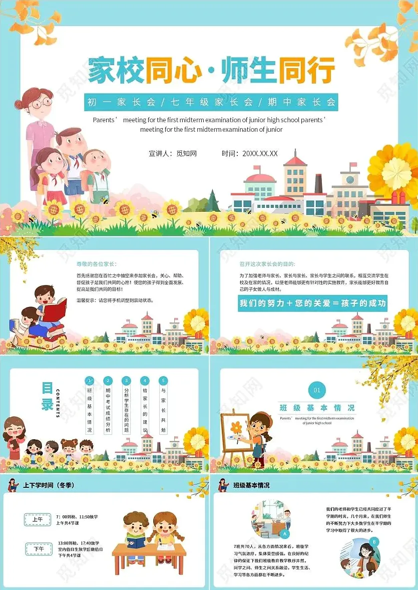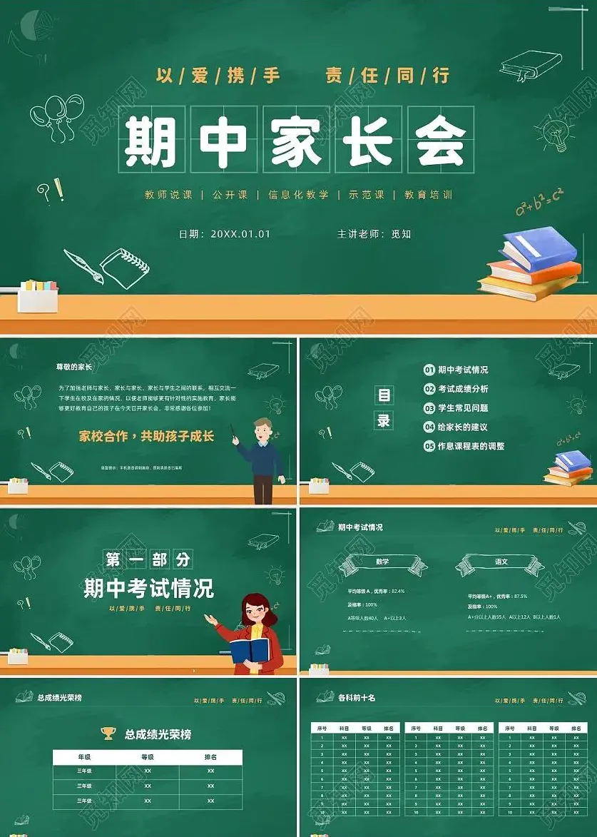 「2025年中小学期中家长会主题PPT模板(10套)」